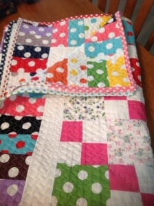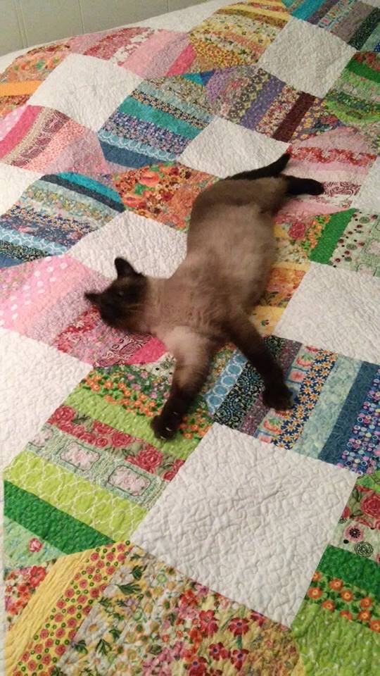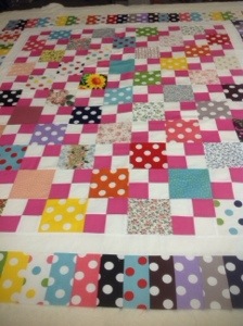 My most ambitious quilting project to date was successfully completed and well received by the recipient. I had asked my sister last year if she would like a quilt for Christmas. She indicated she would, and then I was off and running. I knew she liked scrappy-looking items, so the Rainbow Connection quilt seemed perfect.