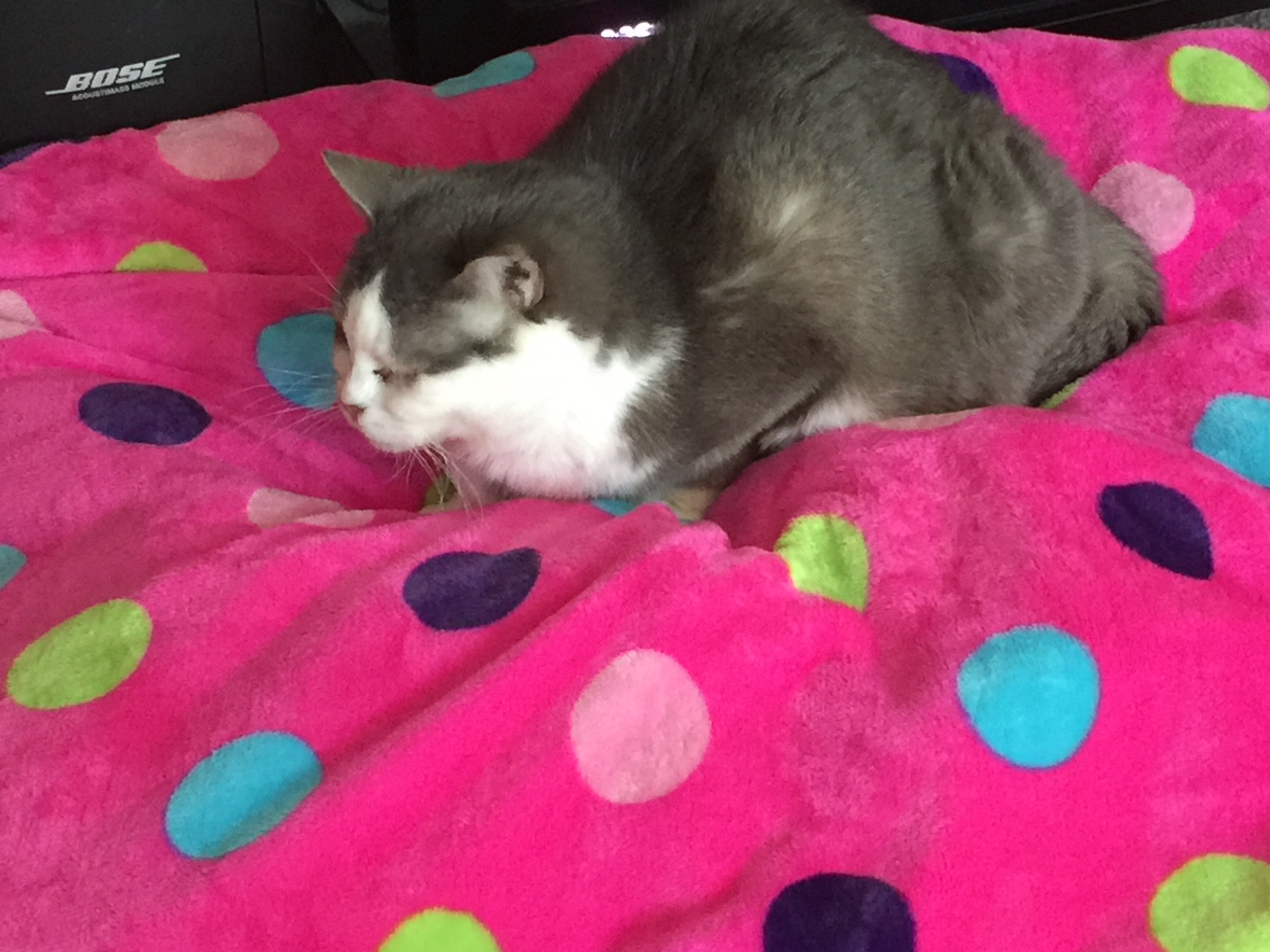 Here is my pet bed/mismatched sock container. I’m hoping the cats find it cozy!